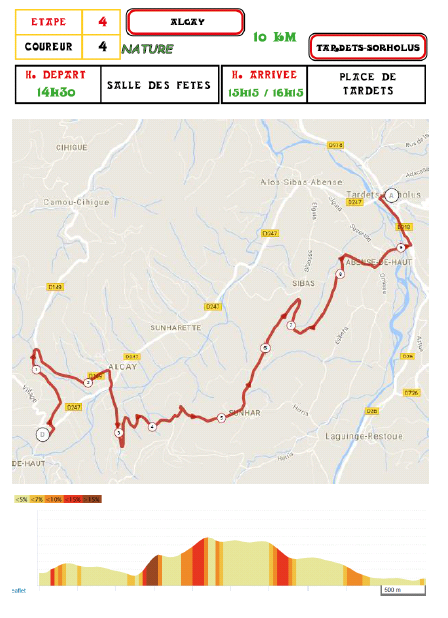 C’est un trail pour le coureur 4, qui part de la salle des fêtes d’Alçay, lieu du repas, emprunte les petites routes, fougerées et chemins pour rejoindre Tardets.