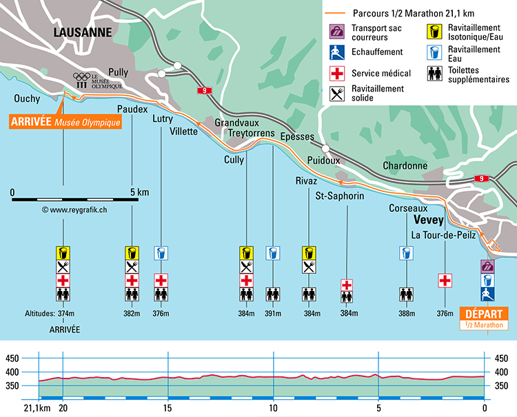 Le semi marathon a lieu en début d’après-midi, démarre à La Tour de Peilz et arrive à Lausanne