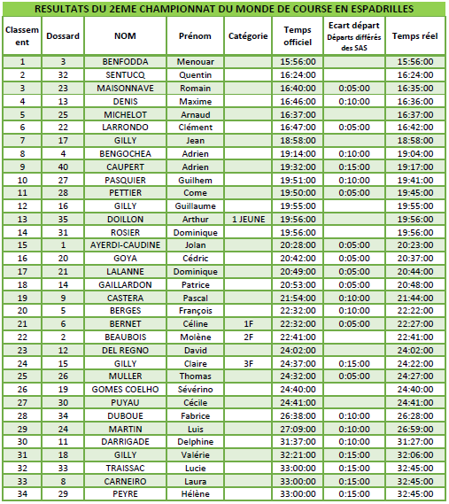 Chez les filles, c’est la béarnaise Céline qui s’impose ! Grande sportive, elle a su s’approprier la course en espadrilles assez facilement 🙂 Sur la 2ème marche du podium c’est une catalan venue avec Menouar, et en 3ème position la jeune Claire qui adore passer ses vacances en Soule pour le 15 août 🙂