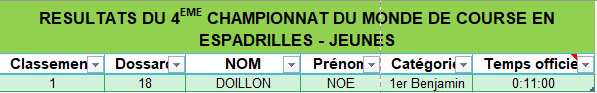 Mention spéciale au jeune Noé qui a l’âge de 13 ans termine la boucle de 2,5km en 11min !!
