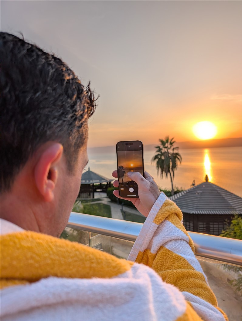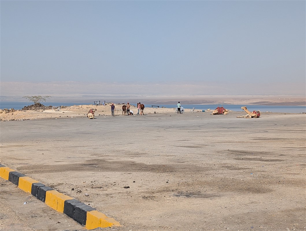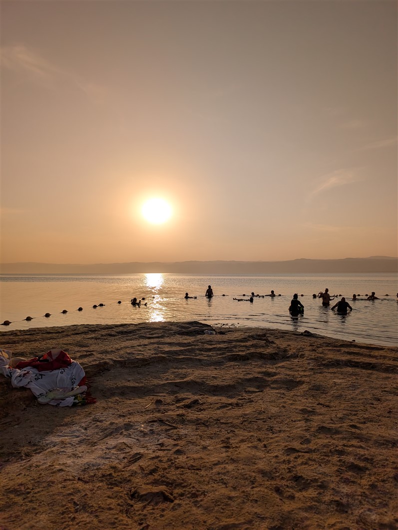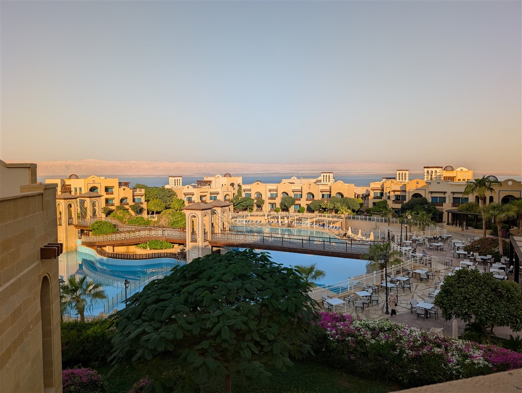 Nous arrivons en pleine nuit, encore un peu groggy par le voyage. Mais au réveil, le samedi matin, le décor nous cloue littéralement sur place. L’immensité de l’hôtel, la piscine majestueuse, la mer Morte en toile de fond, et, au loin, Israël qui se dessine à l’horizon. La matinée s’écoule doucement, entre un long petit-déjeuner, un footing d’acclimatation pour dérouiller les jambes… et un premier plouf bien mérité dans la piscine 🏊♂️✨