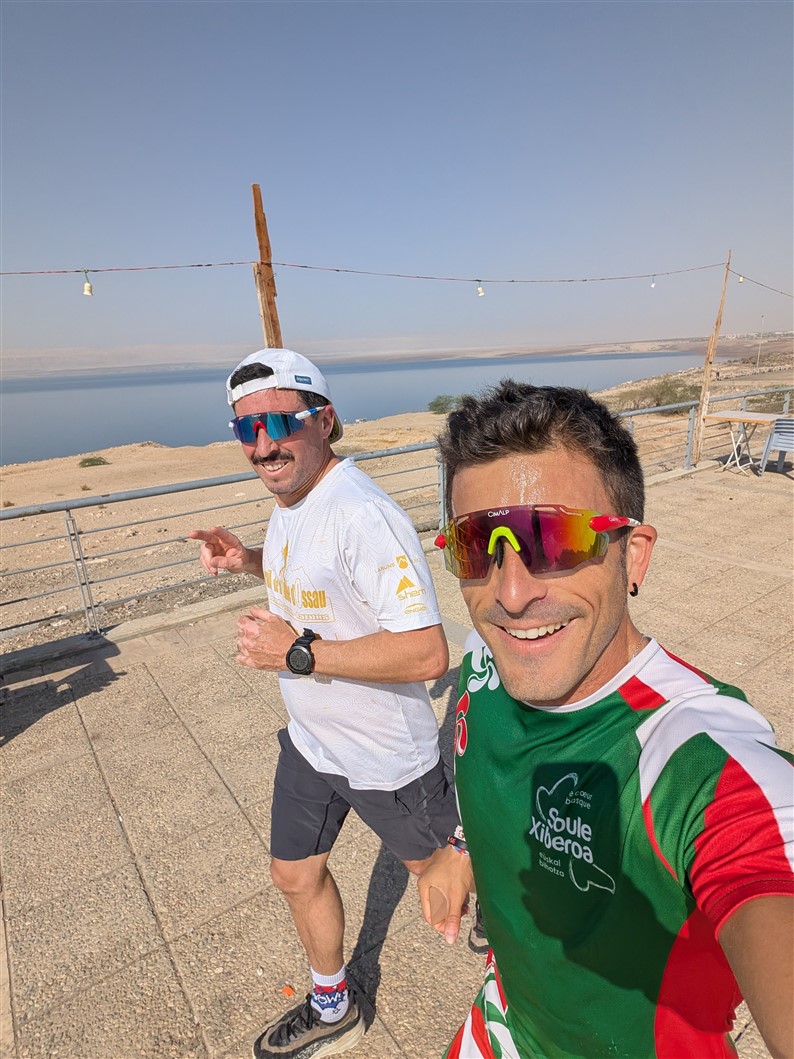 Comme nos vols nous faisaient atterrir en pleine nuit entre samedi et dimanche, nous avons décidé de prendre de l’avance en partant dès le vendredi. L’occasion parfaite de vivre cette aventure aux côtés de Greg, un Béarnais rencontré avant la course, avec qui j’ai partagé le voyage et l’Aventure. Deux jours bonus pour récupérer, profiter à fond de l’hôtel, s’acclimater tranquillement, et surtout vivre un moment mythique : flotter dans la mer Morte 😎🌊